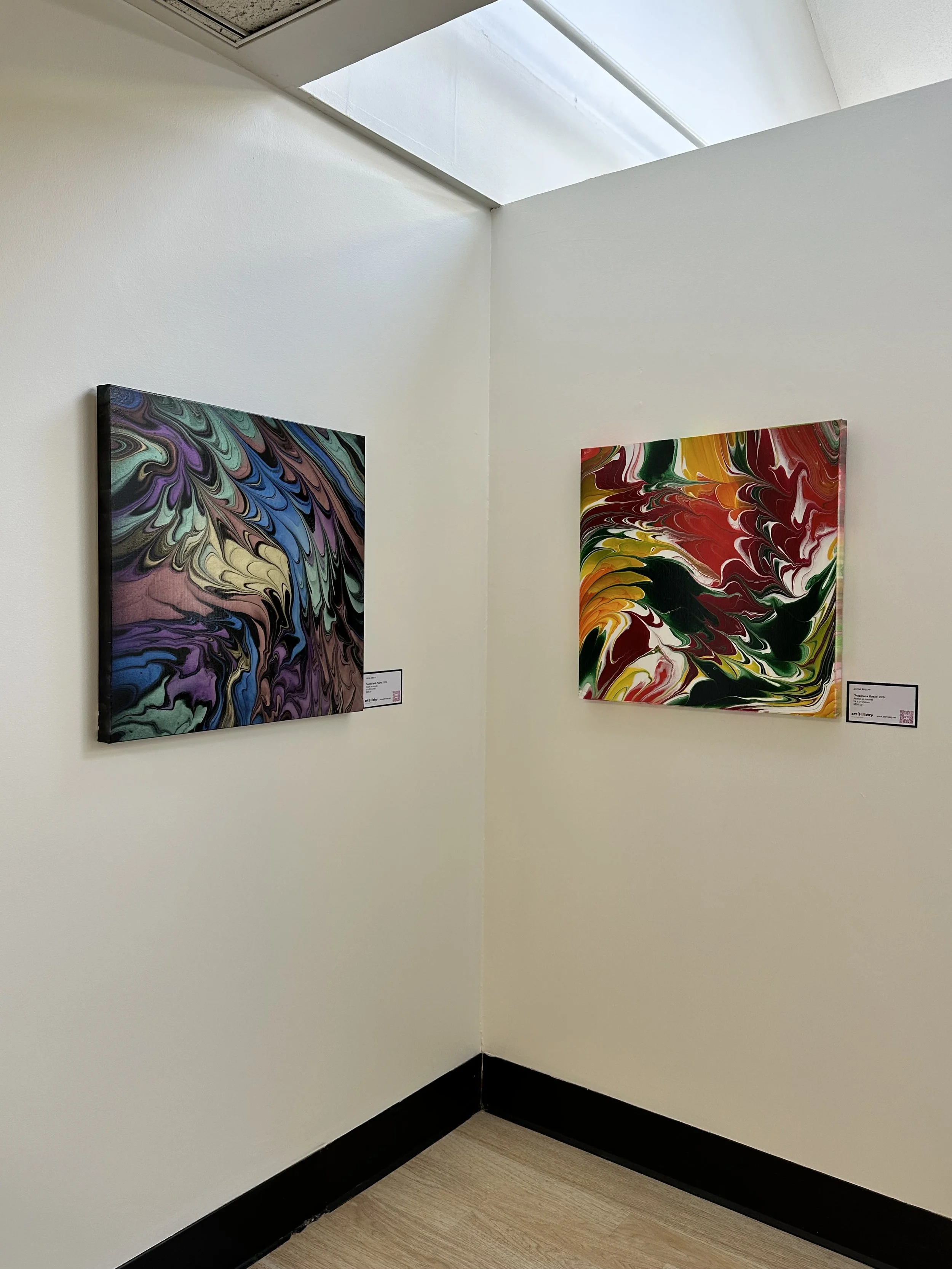 ‘Expressions - Motions In Color’. This fluid art collection stemmed from a deeply personal creation for a family member, evolving into a series that invites viewers to connect with their own emotions through flowing, dynamic colors. Exhibited at Boro & Beauty in Westborough, MA, this collection captures movement, energy, and the intimate interplay of color and feeling.